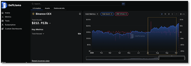 在交易量市占率领先的同时,Binance在Q3以高达148亿美元的净流入量创下最大纪录,夯实了其在中心化交易所(CEX) 领域的主导地位。