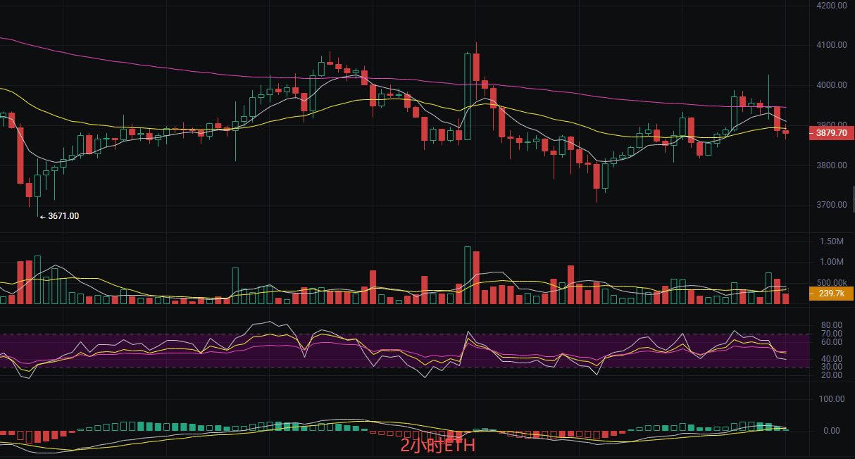 发稿前以太坊现价3888,丽盈观察目前盘口以太坊在强支撑位3671和强阻力位4103之间波动。技术面显示,尽管近期出现了看涨吞没形态,暗示潜在反转信号,短期动能减弱,市场缺乏上行或下行趋势。K线附近震荡,形成小幅波动的整理形态。技术指标MACD多头力量减弱,EMA短期趋势转弱;EMA120仍为主要压力位,盘口的资金流出减少,市场缺乏流动性主力想要拉伸丽盈认为短期内难以撼动,所以丽盈认为高位开空有效可以持有