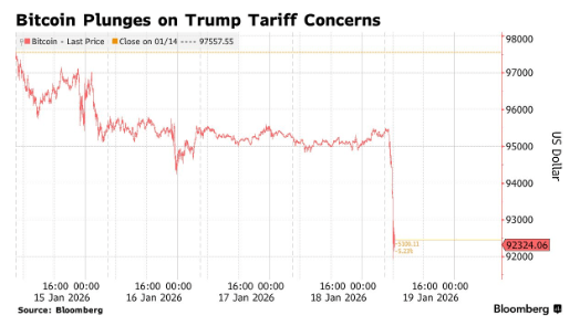 2026-01-21米兰体育,米兰体育官方网站,米兰体育APP下载智通财经APP获悉,在美国总统特朗普宣布拟对八个欧洲国家加征新关税后,避险需求升温令风险资产普遍承压,加密货币市场随之遭遇重挫。
