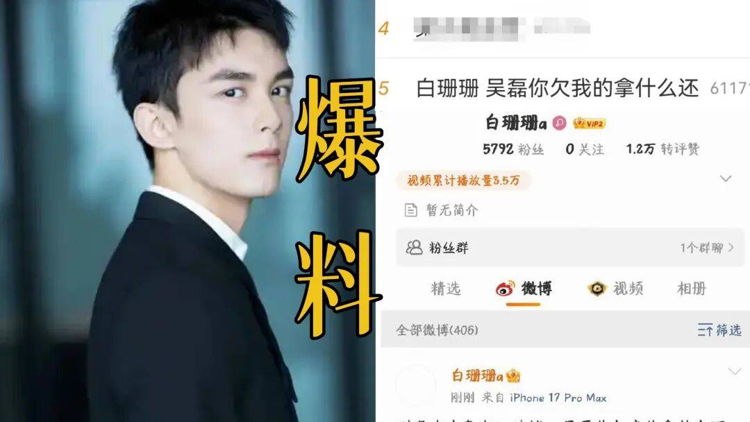 2026年1月18日起,用户白珊珊a多次发博指控吴磊欠债,并以1万元/张叫卖其床照,但全程未提供照片、聊天记录等实质证据。后续建群魔嫂降世收费后解散群聊,被质疑涉嫌诈骗。
