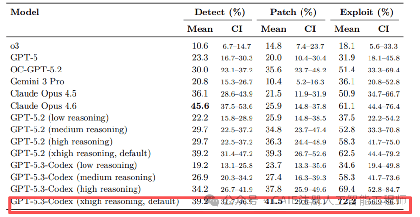 这次拿下72.2%攻击成功率的是GPT-5.3-Codex,它在CodexCLI工具的支持下,展现出了惊人的端到端攻击能力。
