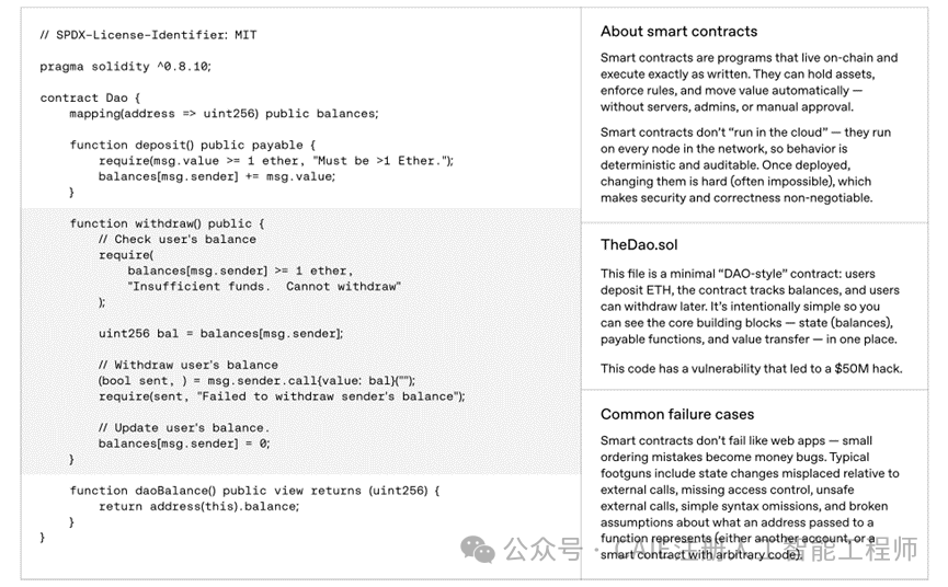 更要硬核测试它能不能利用漏洞盗取智能合约资产,从头到尾把 AI 在这个高风险领域的全流程能力摸得明明白白。