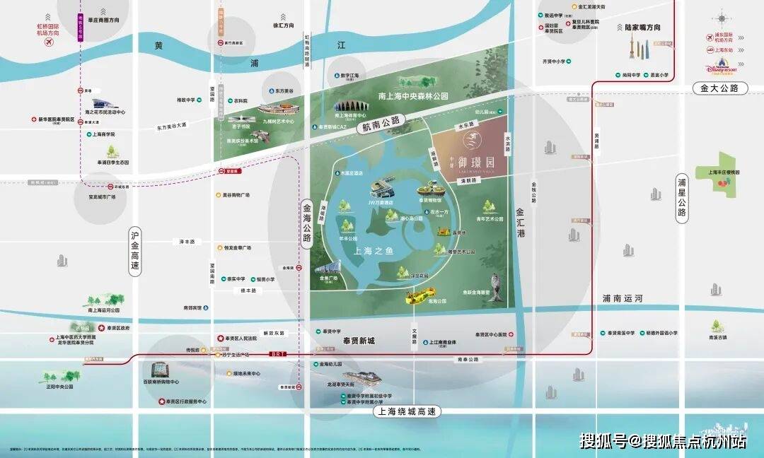 项目位干上海之鱼内,东侧是极具特色的金汇港,水脉碧波倒映生态景观。坐拥约万亩林地,占地面积约4.78平方公里南上海中央公园,更拥享上海之鱼约13公顷环湖景观带和集艺术展览、活力健身、娱乐休闲、游憩观赏为一体的现代城市公园群。