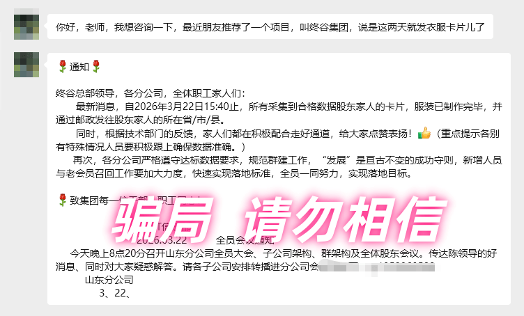 据网友反馈,该诈骗团伙近期已更换身份为“某绣商会”,沿用原有套路继续实施诈骗。