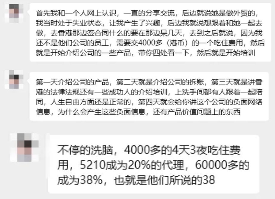 该组织已存续26年,长期以“金蝉脱壳”的方式规避打击,不断成立新公司与新人签订合约,业务范围涵盖香港进口批发、红酒、空气净化器、香水、精油、护肤品、母婴产品、手表等多个领域。截至目前,该传销组织仍在广东一带活跃实施违法活动,属于长期高危传销陷阱。