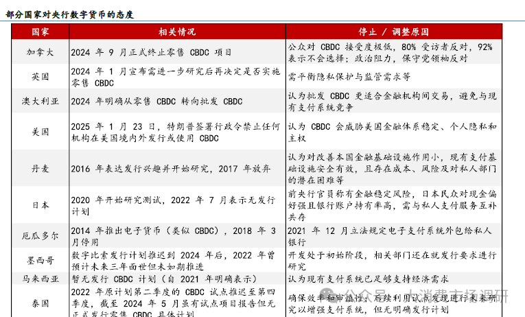 值得注意的是,在部分OECD及新兴市场国家,稳定币的快速发展对央行数字货币的替代效用较为明显,这些国家开始出现退出央行数字货币项目的趋势。从停止或调整原因看,公众对于个人隐私的担忧、避免与现有支付系统竞争、潜在的金融稳定风险等因素是这些国家不再积极推进央行数字货币项目的主要考虑(图表25)。