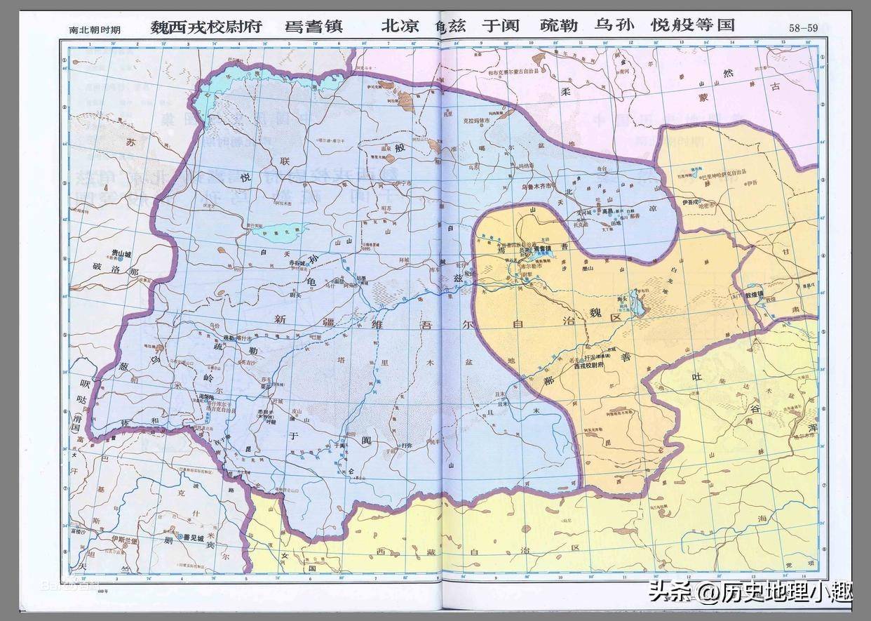 东汉末年到魏晋南北朝时期,中国的政权分裂,但中原政权依然维持着对西域的管辖。公元327年,张骏在今天的吐鲁番地区设立了高昌郡,标志着中原的郡县制首次在西域实施,这使得西域的行政结构逐渐与内地接轨。吐鲁番作为丝绸之路的重要枢纽,成为了后来的隋唐时期西域事务的中心之一。