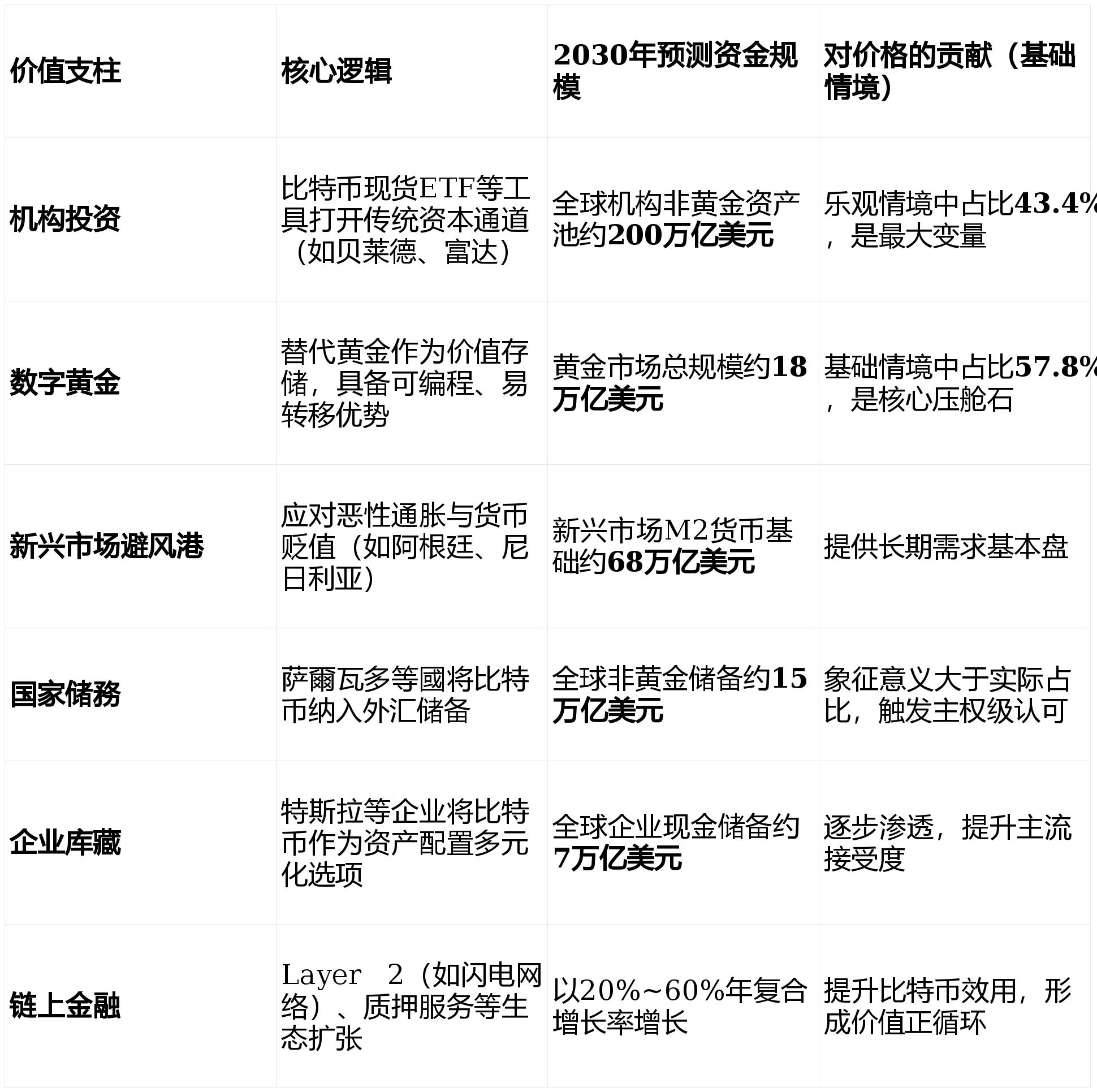 虚拟货币的价值绝非仅靠挖矿劳动,而是由六大资本流入共同构筑的动态共识网络。根据方舟投资(ARK Invest)预测,到2030年,比特币价格在基础情境下可达120万美元,乐观情境下甚至冲击240万美元。
